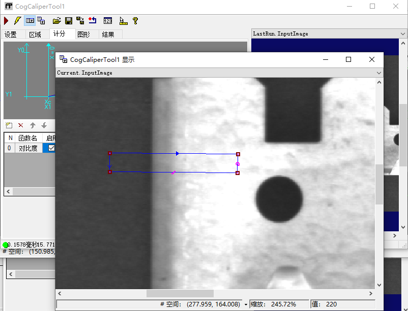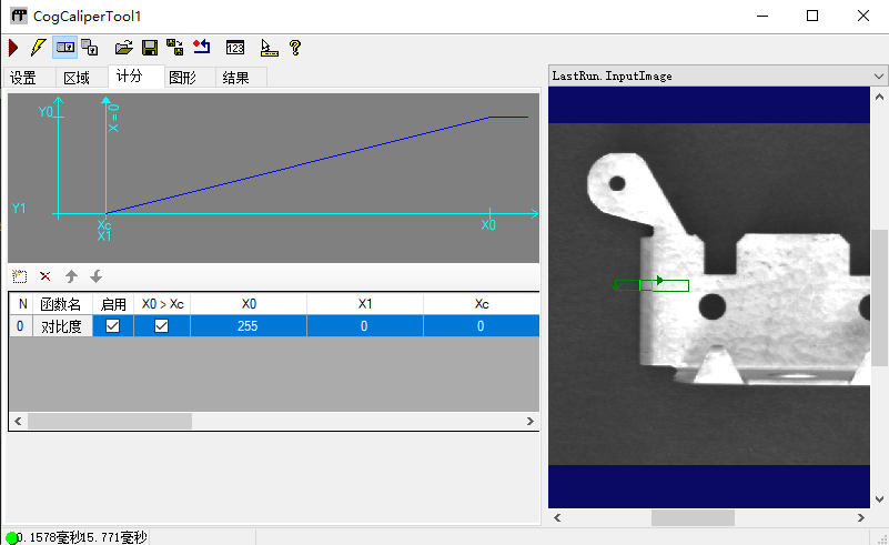 然后通过设置对比度阈值,查找数量,过滤像素以及边缘极性计算出最终结果,当然还得加上计分函数。