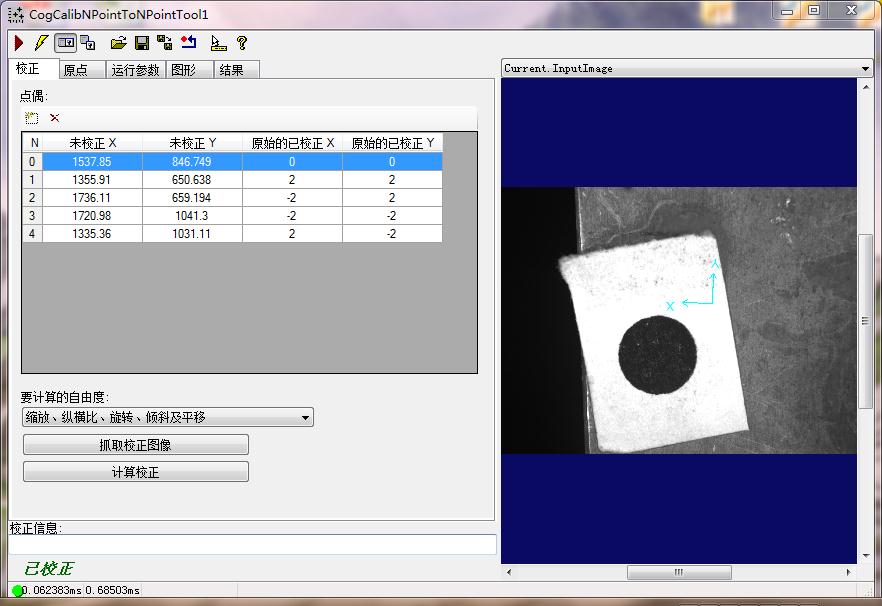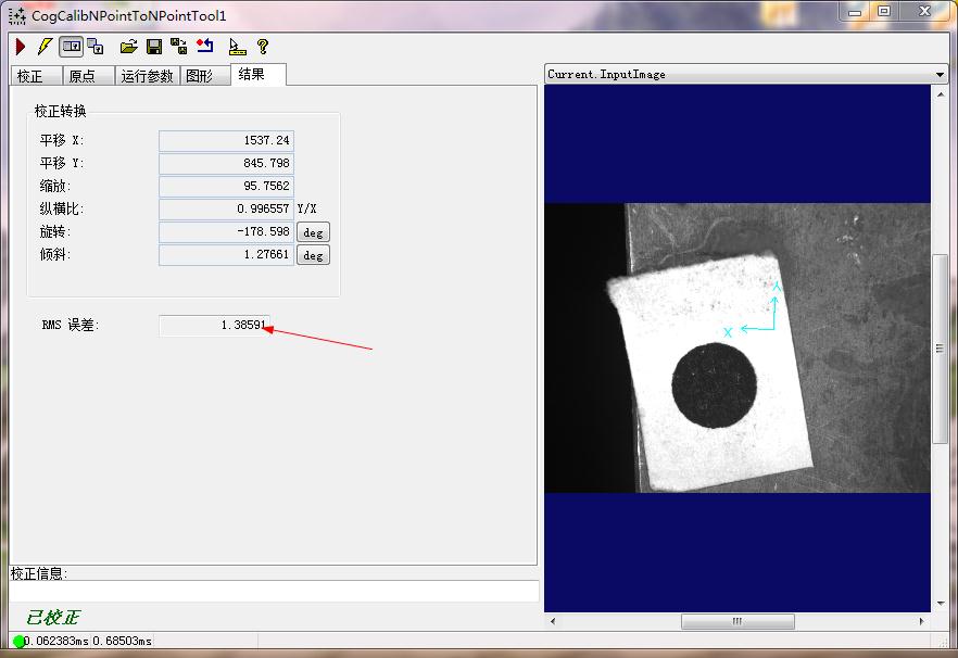 只需要将标定板放在被测位置,传入图像到CogCalibCheckerboardTool标定工具,工具即可自动计算标定数据。