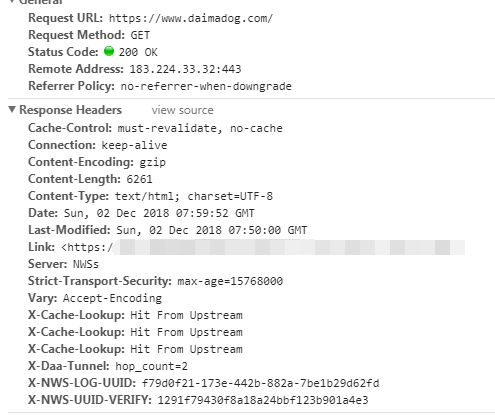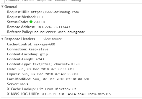 至于设置了动态文件不缓存,还要不要设置首页规则就看你自己了,我是设置了的反正设置上又不收费,无所谓咯。然后等待cdn部署,完成后的请求如下图: