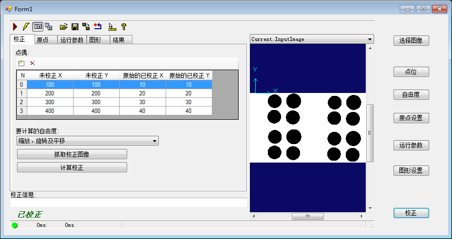 读入一张图像,并实例化一个CogCalibNPointToNPointTool,然后在CogCalibNPointToNPointTool控件中显示出来,实际使用时可以不予显示。