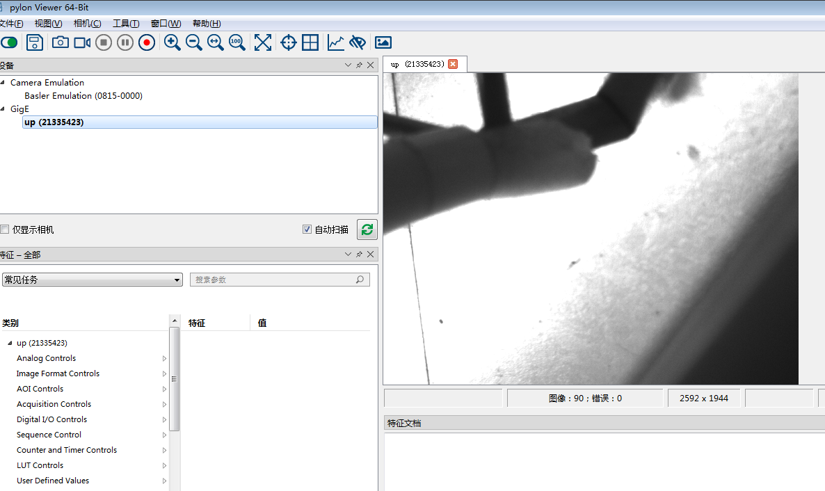 设置好后,打开pylon Viewer程序,这是basler提供的相机调试工具,测试下相机是否正常,然后就可以开始进入VS开发了。