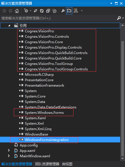 如上代码我添加了两个控件程序集,分别是以cognexWF命名的Cognex.VisionPro.Controls